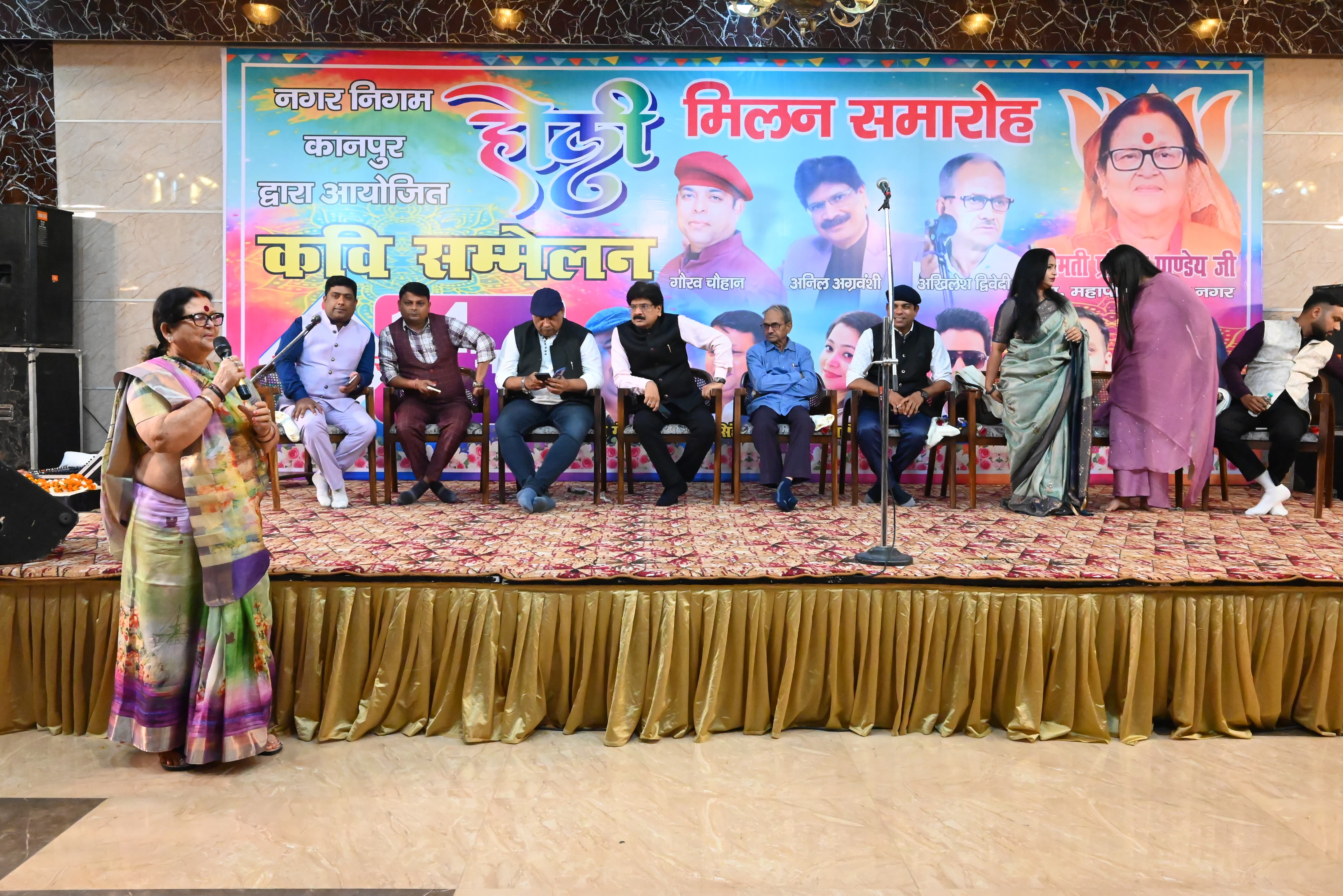 कानपुर। शनिवार शाम कानपुर नगर निगम की ओर से होली मिलन समारोह के शुभ अवसर पर टीएसएच स्वरूप नगर में भव्य कवि सम्मेलन का आयोजन किया गया। कार्यक्रम का शुभारंभ महापौर प्रमिला पांडे ने दीप प्रज्ज्वलित कर किया।
