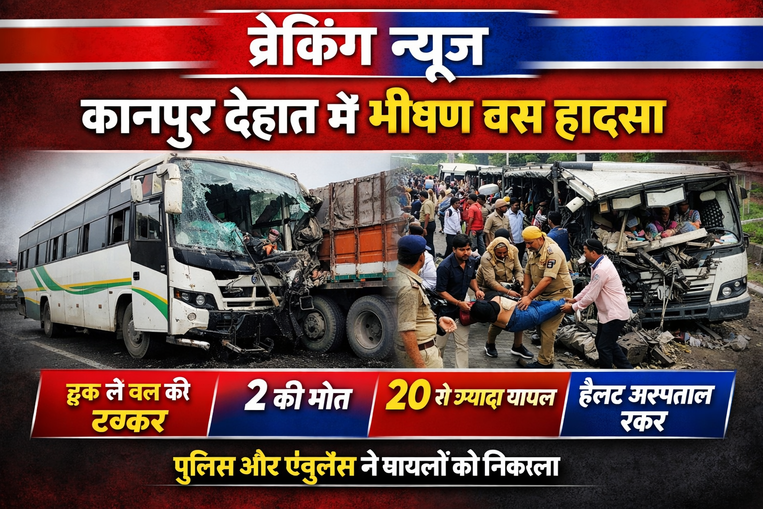 कानपुर रनिया में बस ट्रक की टक्कर, दो की मौत 20 घायल