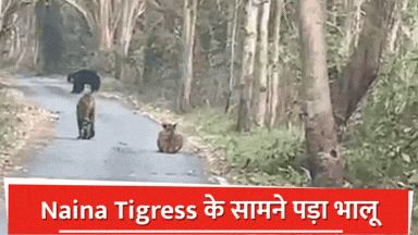 पीलीभीत टाइगर रिजर्व में पर्यटकों द्वारा कैमरे में कैद किया गया Naina Tigress और भालू का भयानक सामना